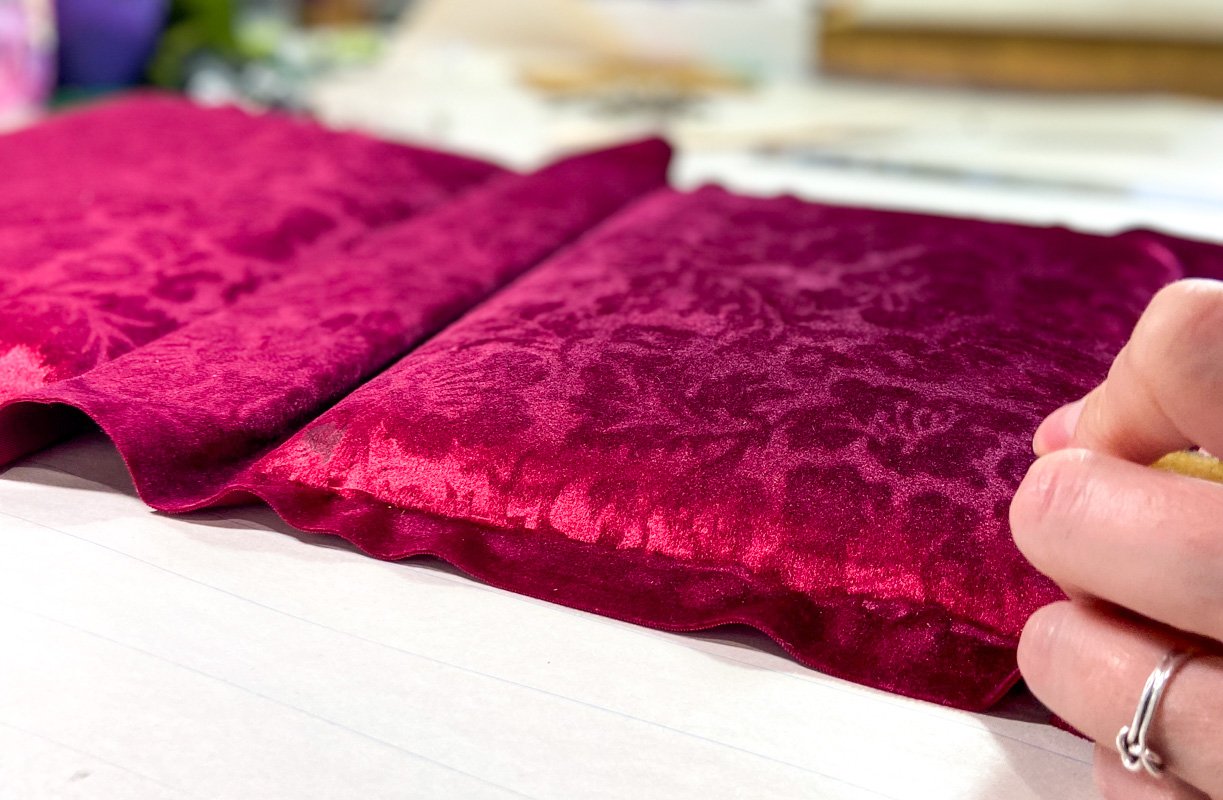 Instead of traditional book cloth, we can re-bind anything with a unique cover, like a shiny gold leather, or with one of our beautiful patterned papers. You also have the option of a fabric cover, like a sturdy denim, or even custom embossed velvet.