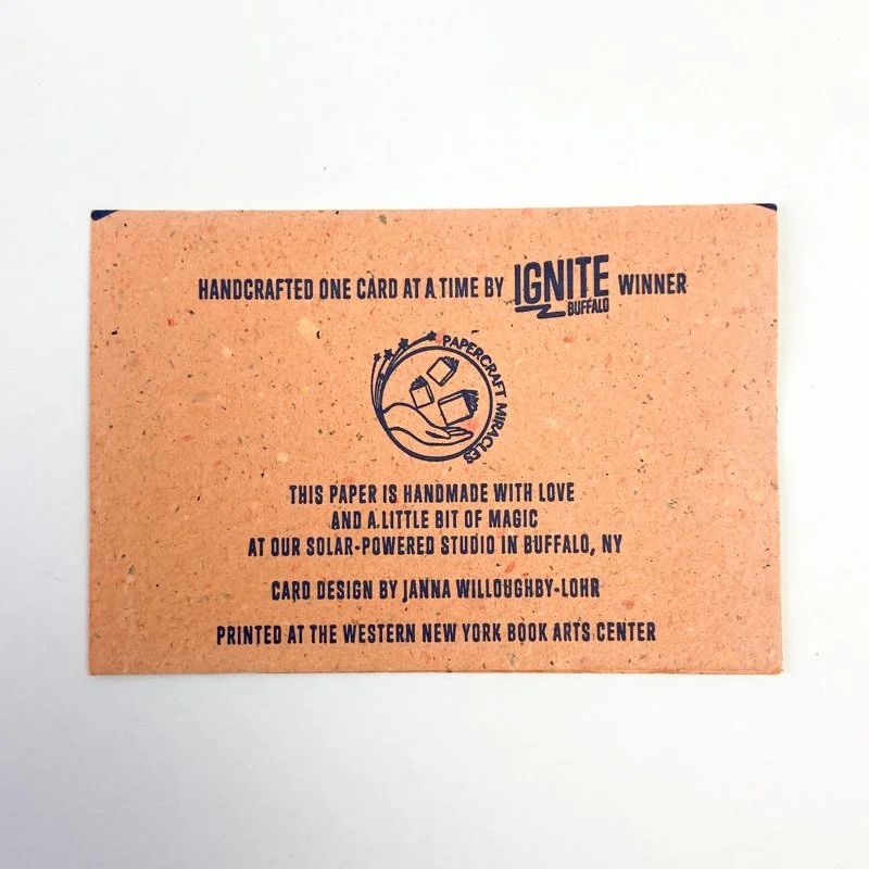 Our studio can print on all of our handmade papers including our seeded papers. Letterpress and foil stamping available as well.