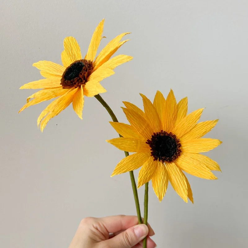 Single paper flower stems, crepe paper flower bouquets for gifts or special occasions, long-lasting paper flower arrangements, flower walls—we do it all.